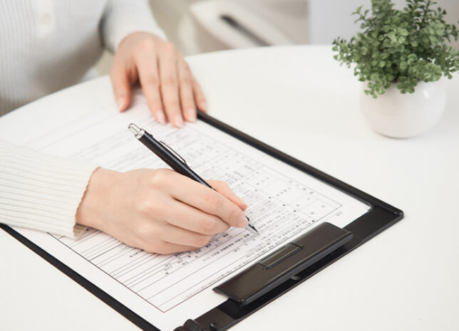 初診の場合、まずは問診表に沿って患者様の心身の状況についてお聞きしながら問診表に記入させていただきます。